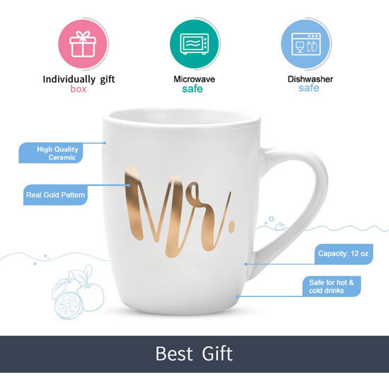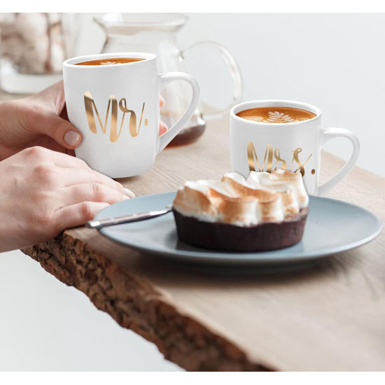 The Mr & Mrs coffee mug set revives the beautiful memories of the wedding or even a happy relationship while enjoying your coffee.